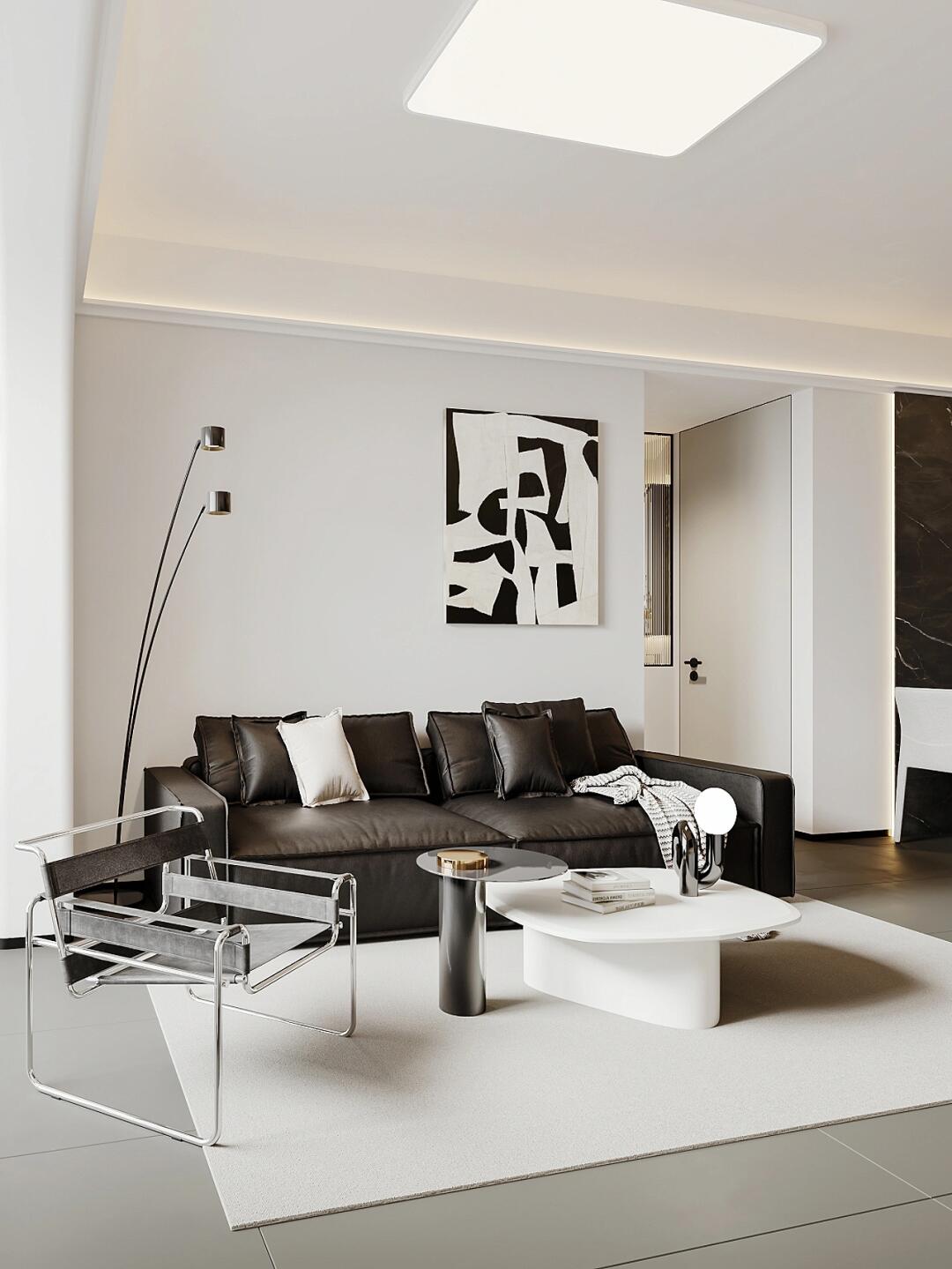 黑白灰配色無疑是現(xiàn)代簡約風(fēng)格的基礎(chǔ)了,最簡單的黑白灰搭配也能做出房屋的高級感,舒適感。