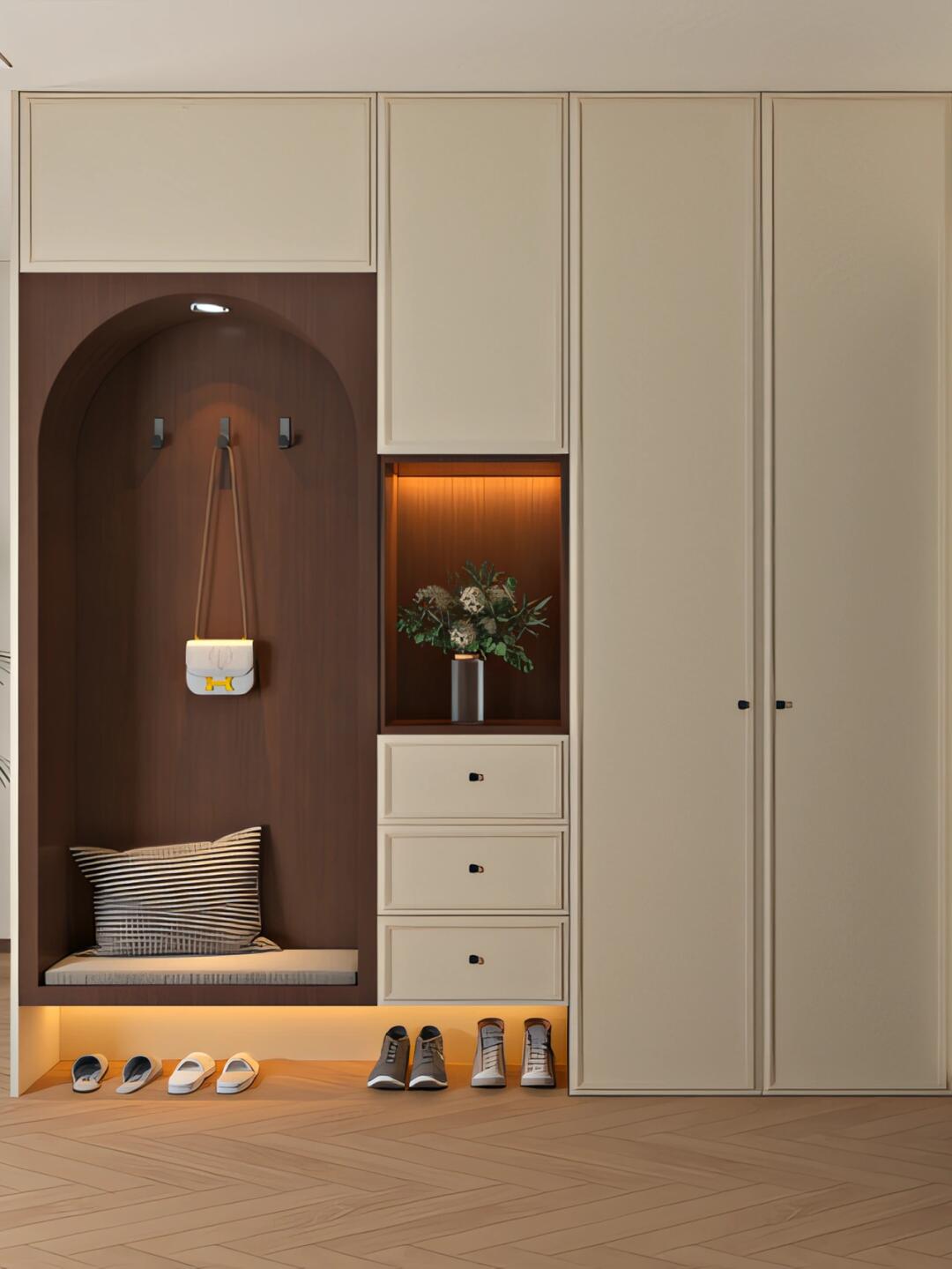 胡桃木飾面延展于空間