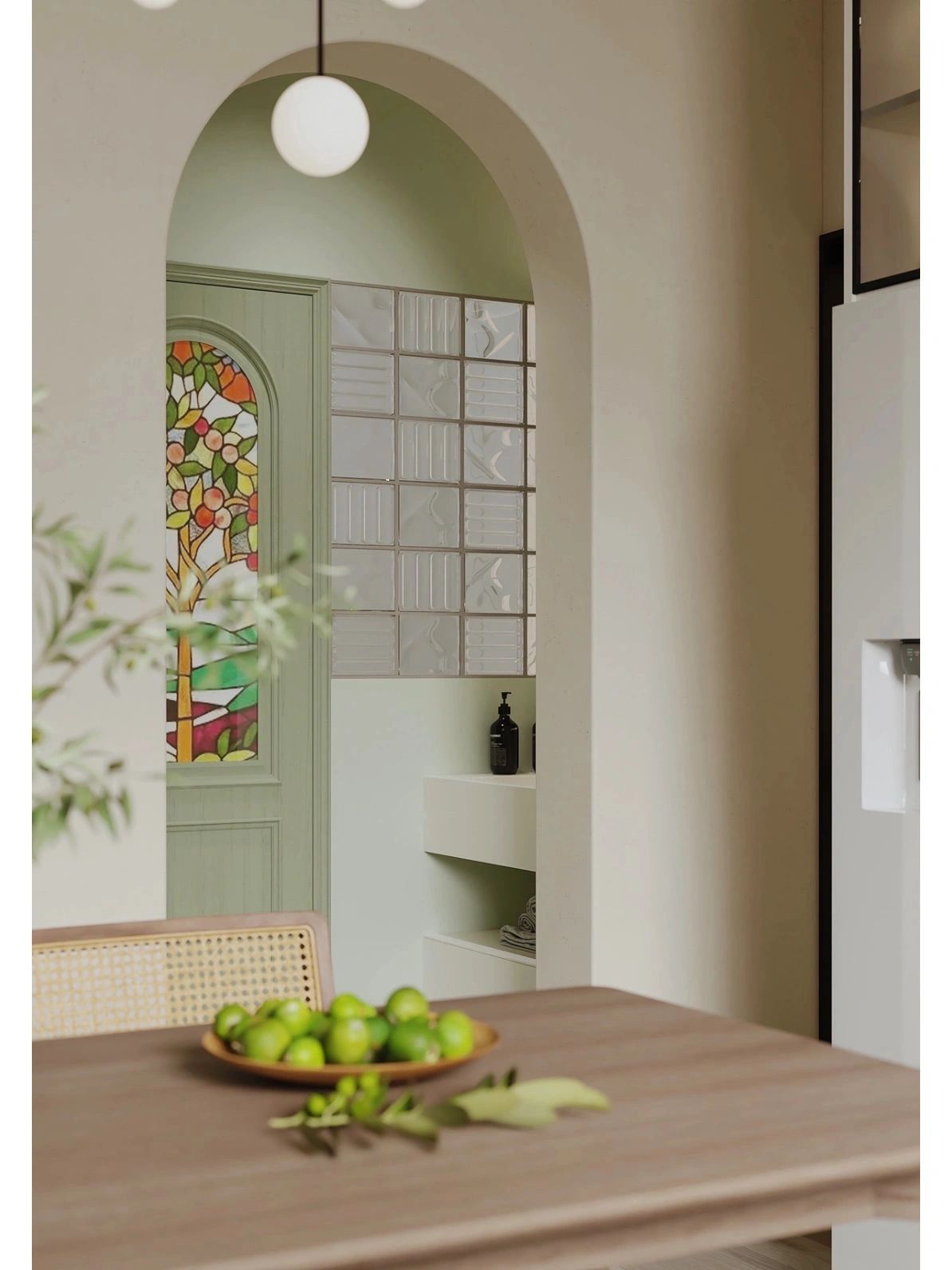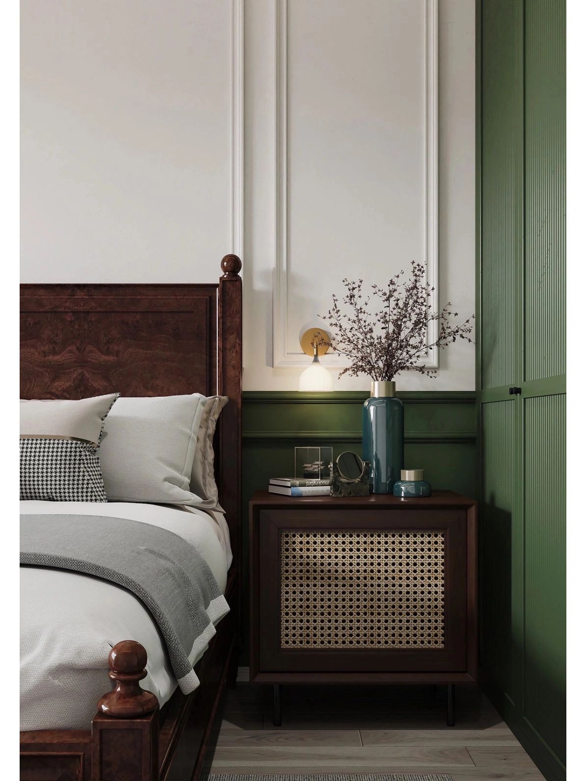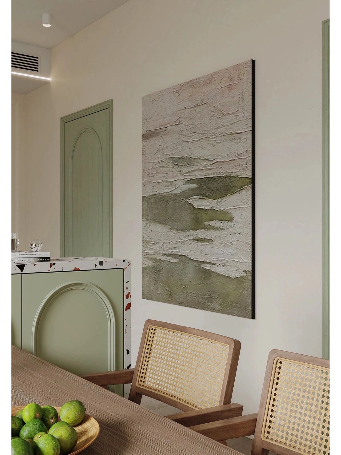 在全屋綠色的鋪陳下,用法式石膏線做裝飾,再加上混搭的現(xiàn)代&復(fù)古家居,清新自然又復(fù)古高級(jí)~