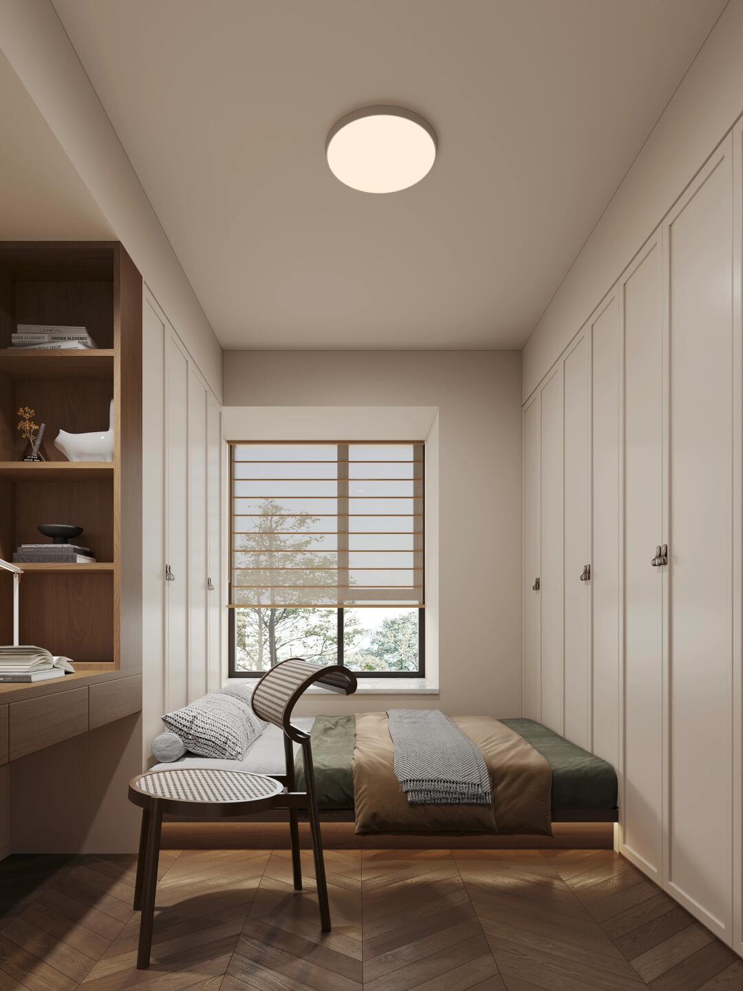 不需要太復(fù)雜的造型,簡單的石膏雕花線條作為頂面造型,既不影響層高,也讓家里更為溫馨小浪漫。
