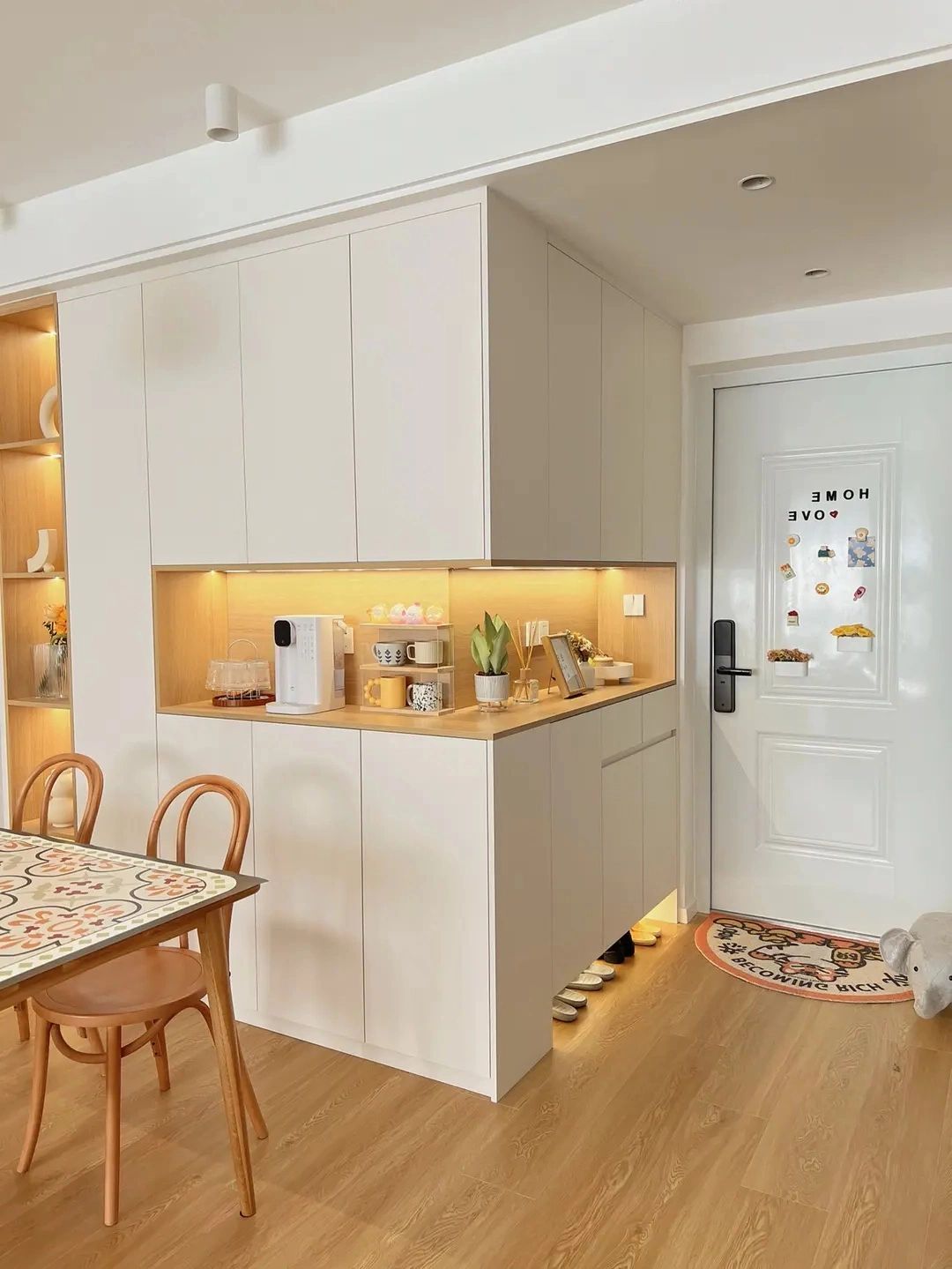 圓弧形多功能鞋柜 治愈奶油色 高端定制家居