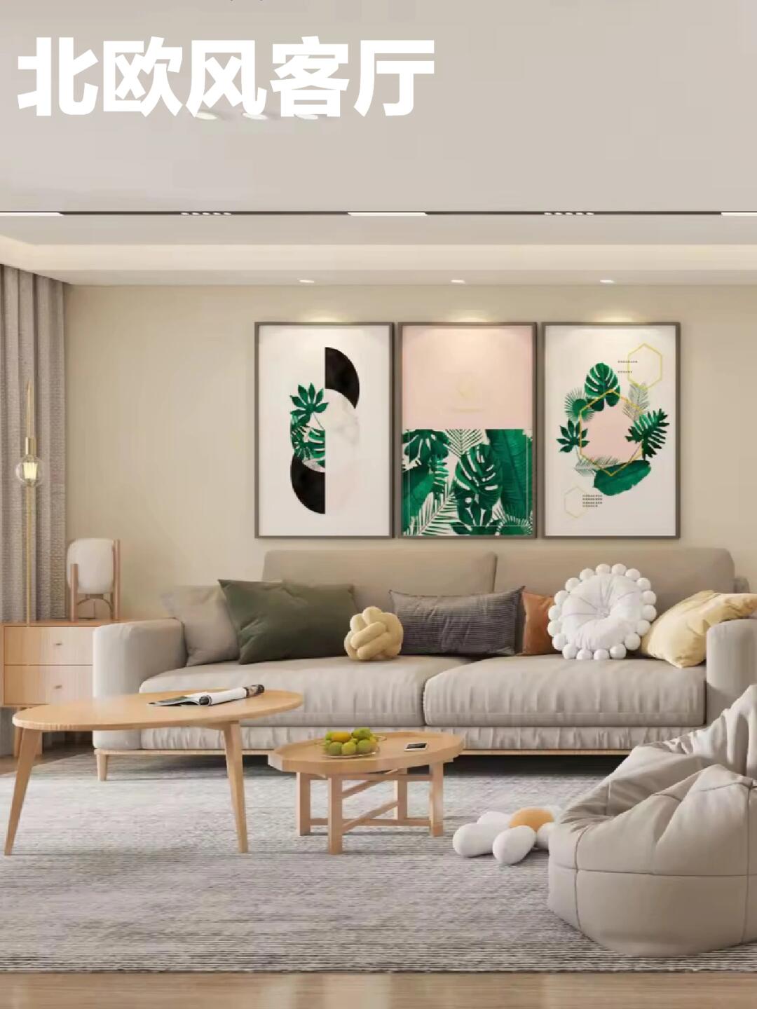 客廳:原木家具搭配植物裝飾,營造自然、充滿生機的空間。
