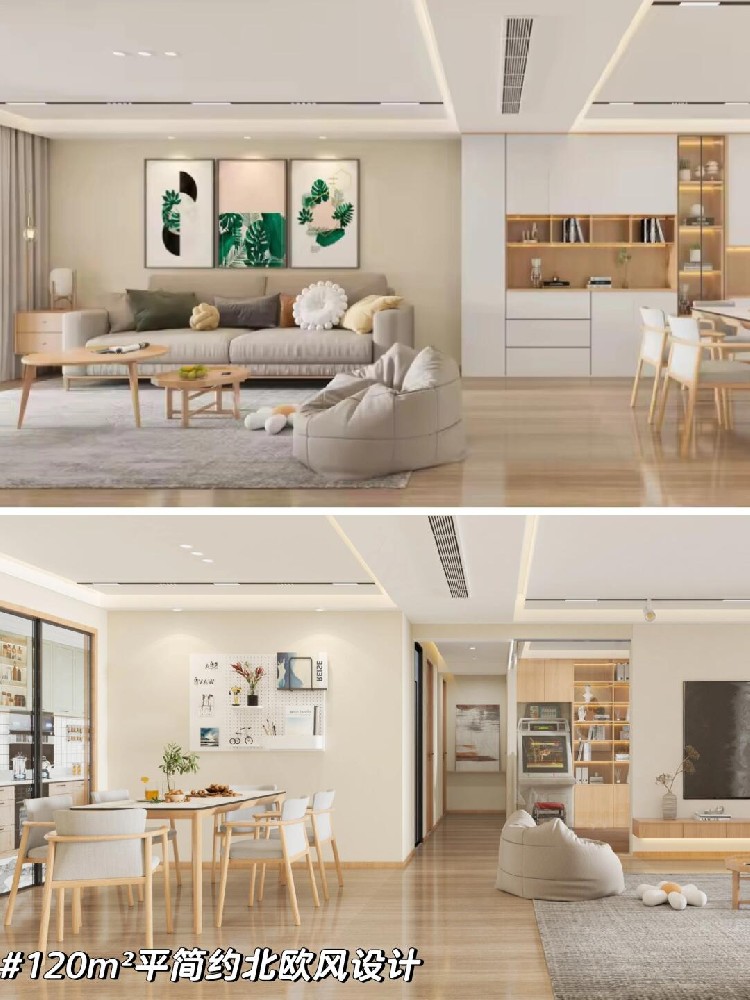 整個空間以白色為主調以白色為主調,清爽干凈;客餐廳聯袂,空間感翻倍