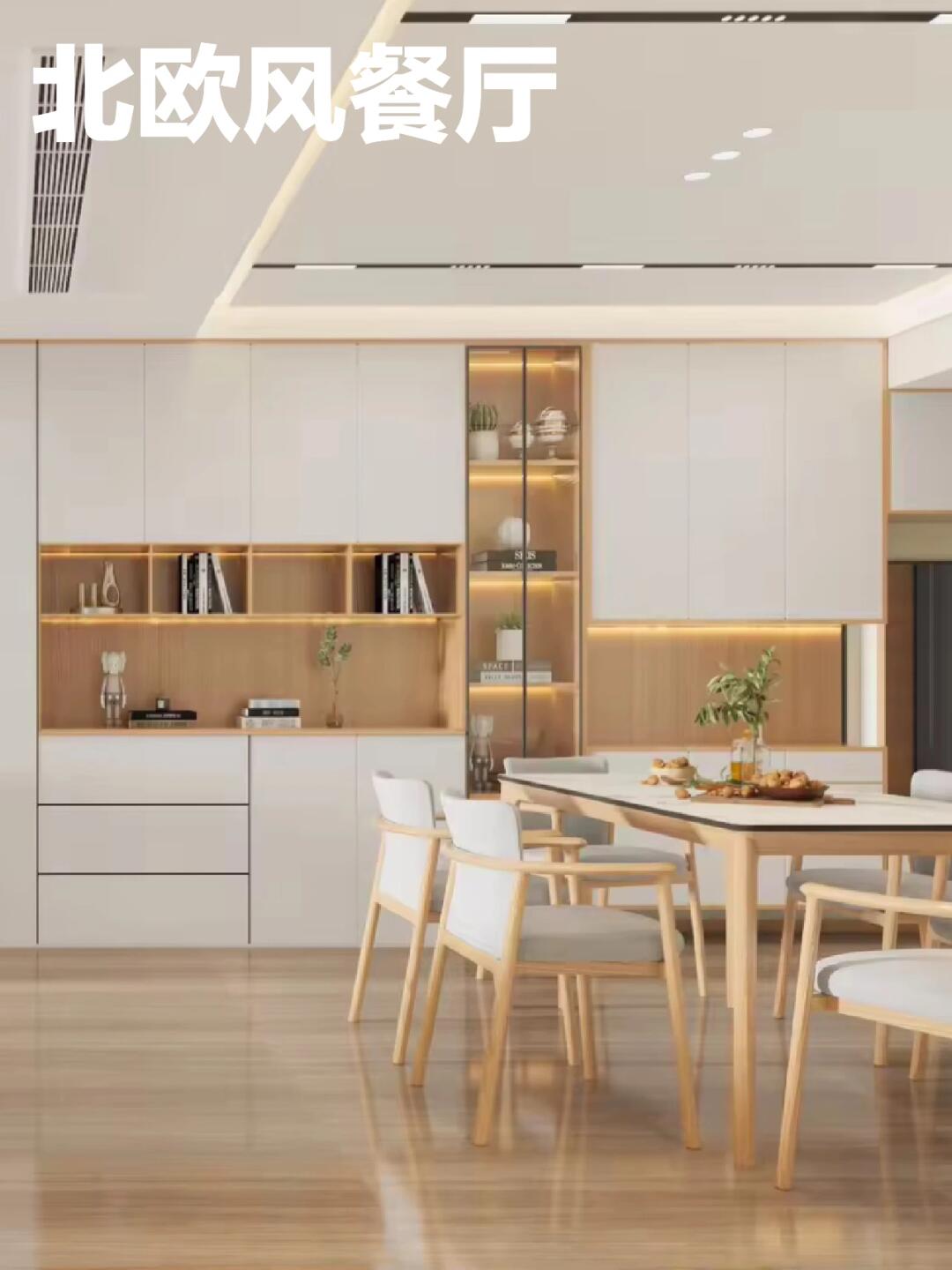 餐廳:爵士白臺面與原木餐桌的碰撞,既展現了優雅的氣質,又兼顧了實用性。