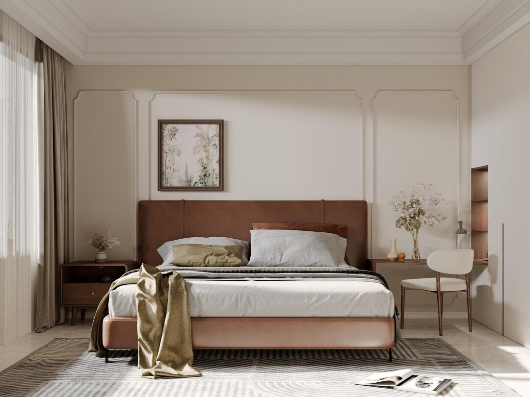 床品搭配采用咖色搭配給人溫暖的感覺整體色調沒有用特別冷的顏色。