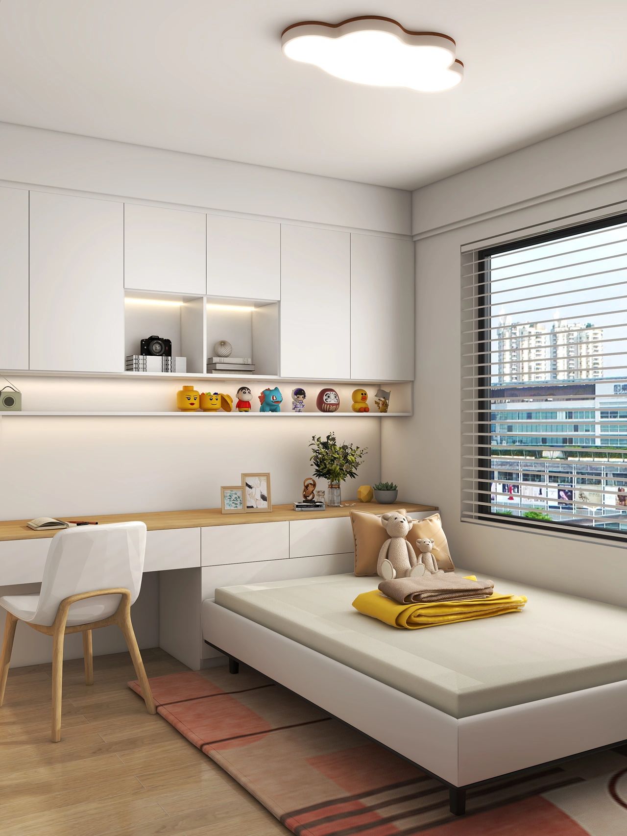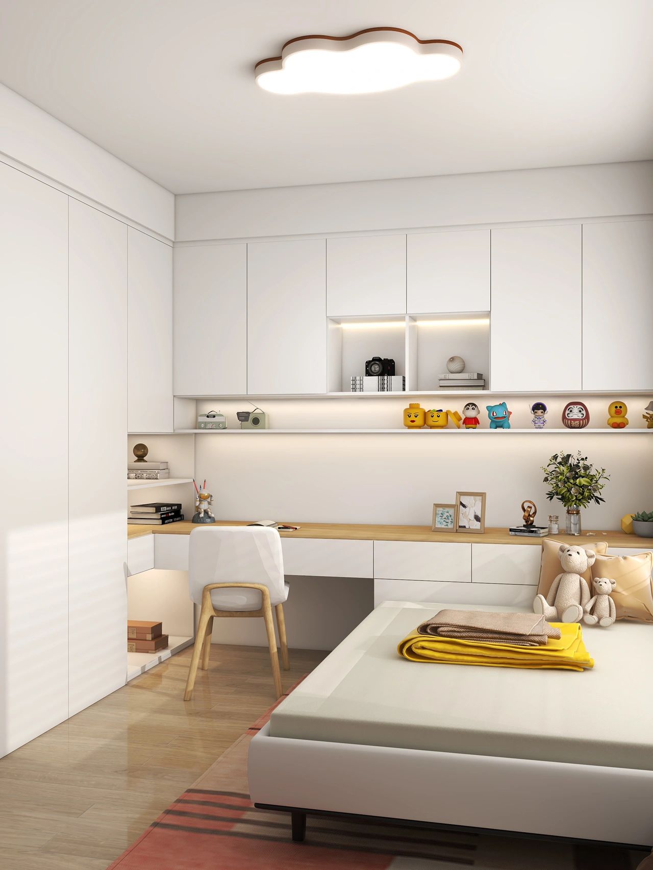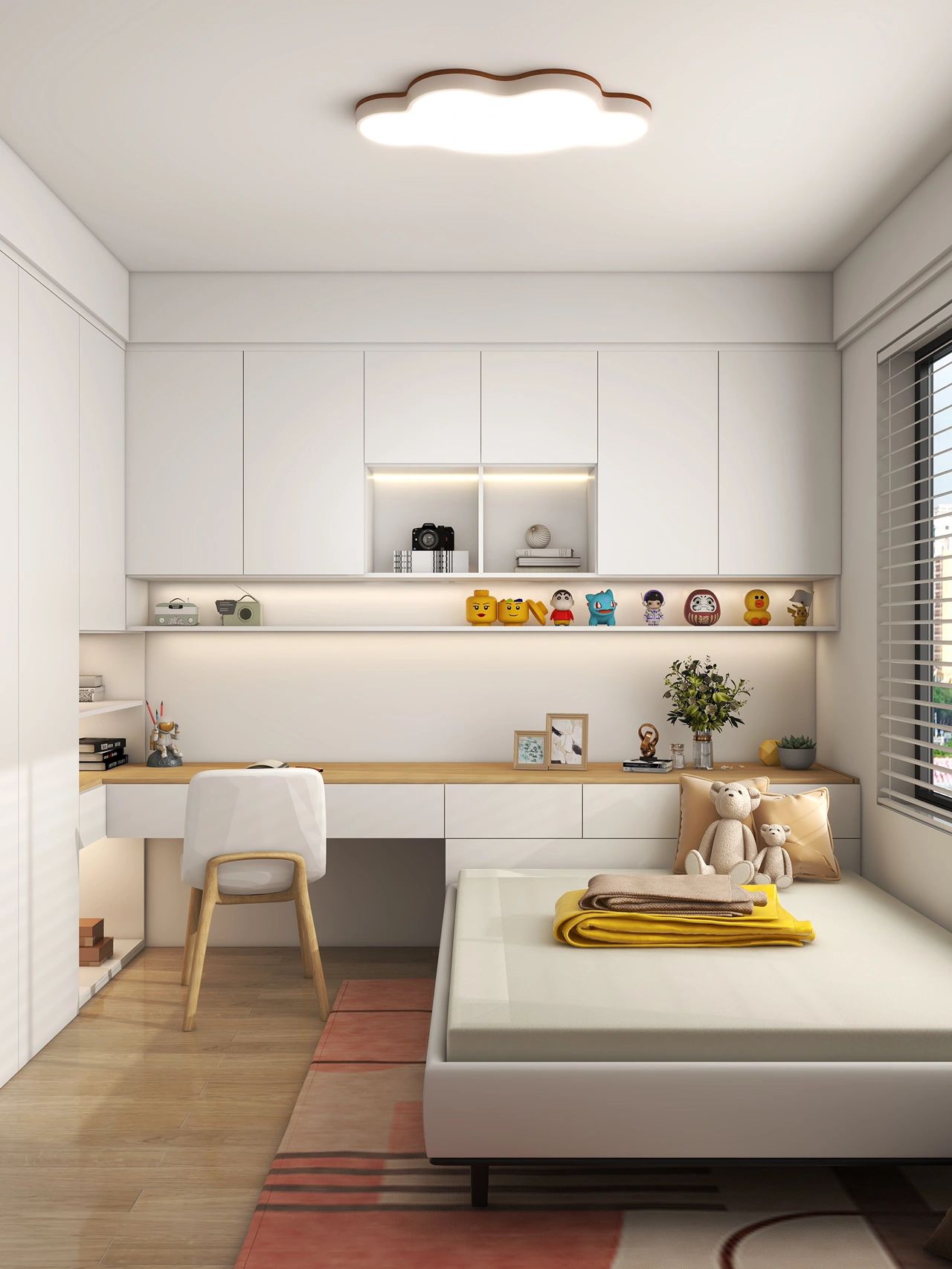 10平方的兒童房這樣裝,省錢又好看,不做榻榻米,書桌衣柜做一體,床靠窗窗放。