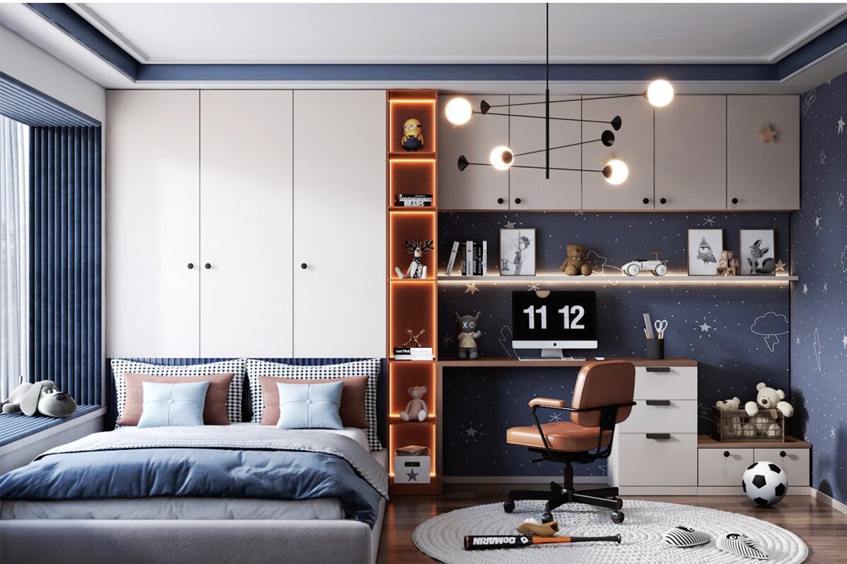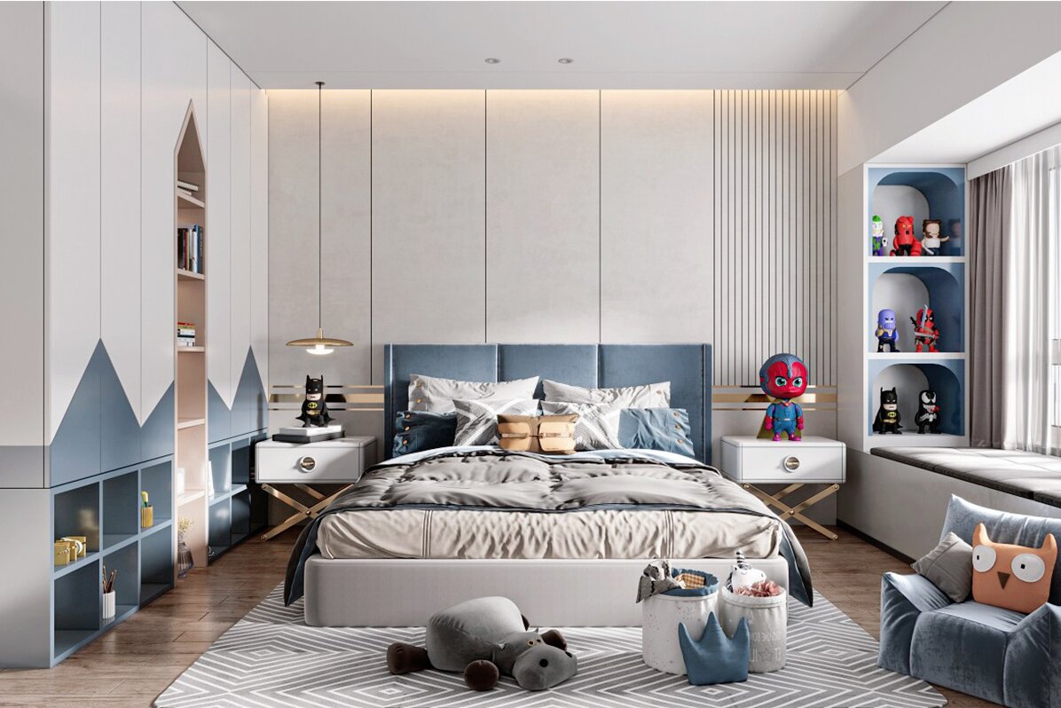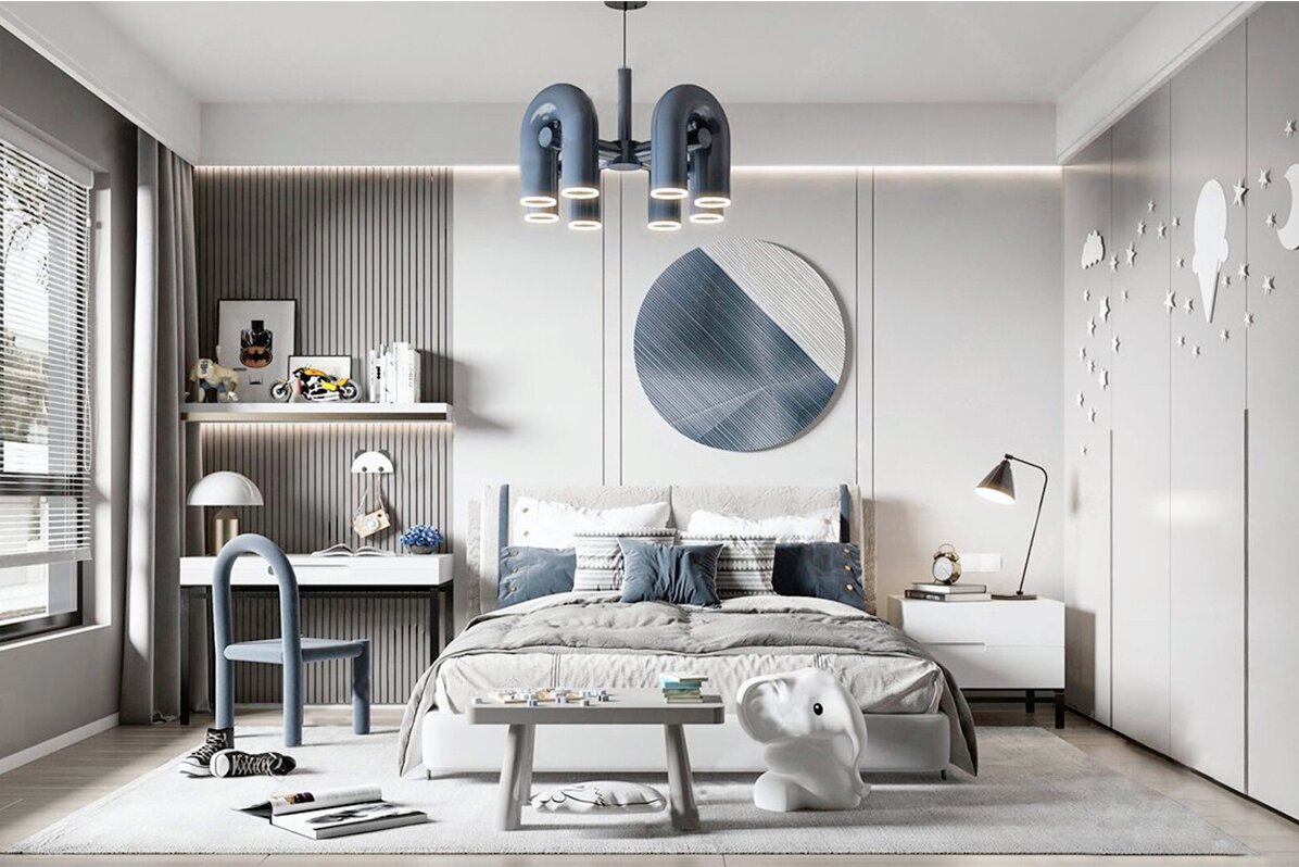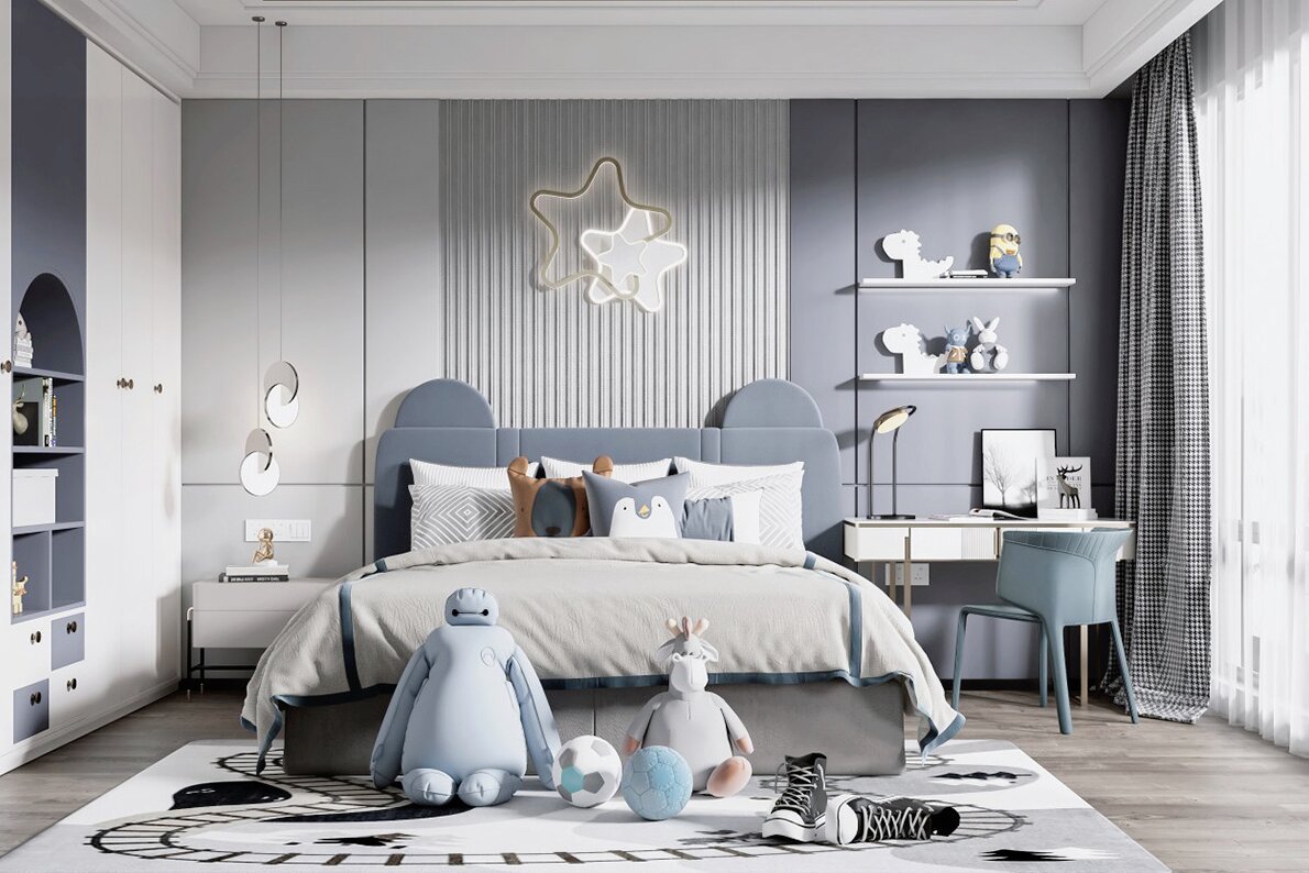 兒童房的主要作用是提供睡眠,根據男孩性格盡量選擇活潑、靈動的顏色,藍色是不錯的選擇。 .
