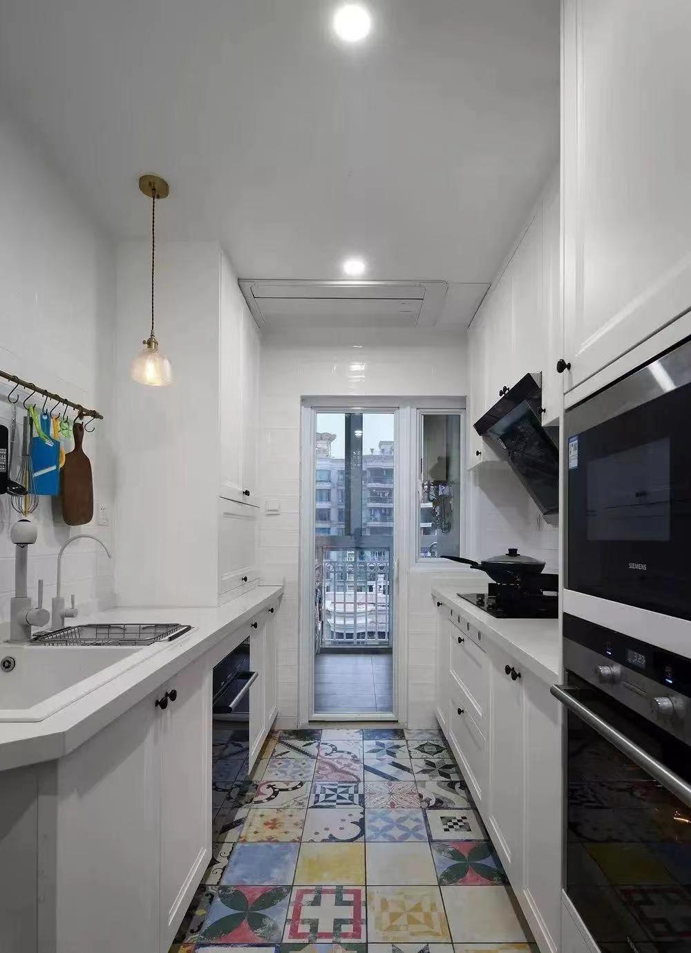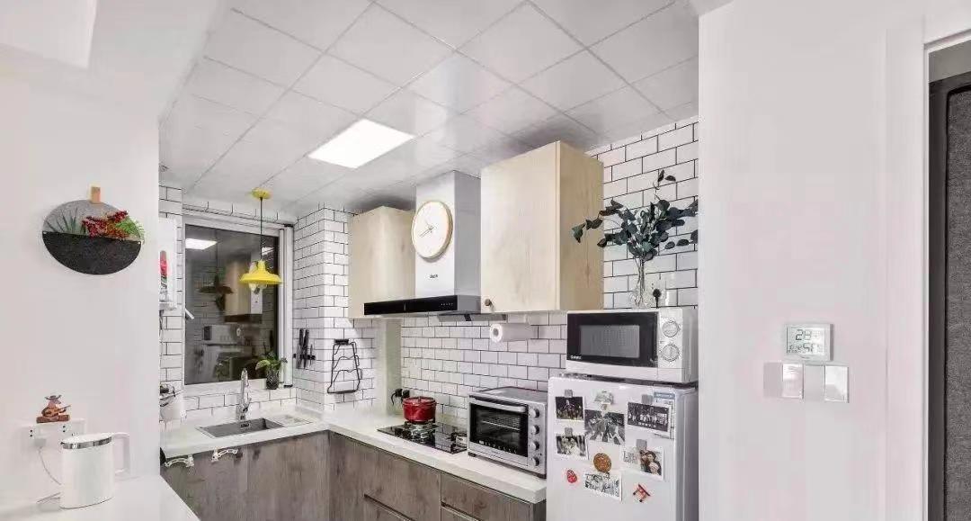 廚房如果只用一個主燈直射照明,難免會背光,影子遮擋造成視覺盲區(qū),除了重點照明外,還可以選用銅燈、吊燈或者燈帶等進行局部照明。