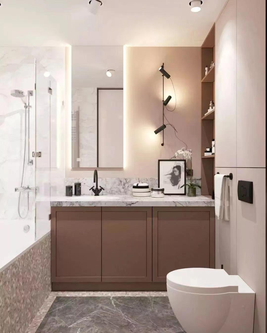因此,建議安裝鏡前燈或者藏光鏡;天花板使用銅燈,照明均勻,也顯高級,當然也可以用吸頂燈組合其他燈具使用。