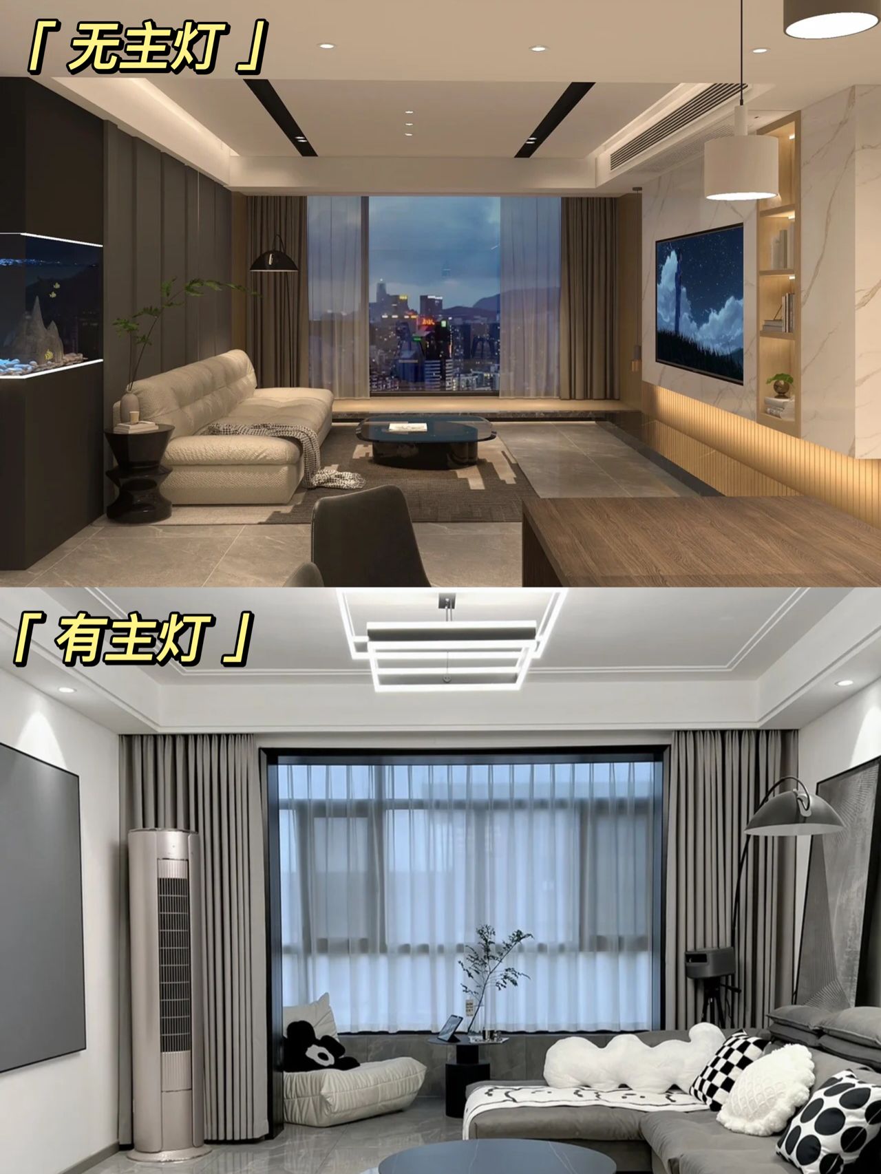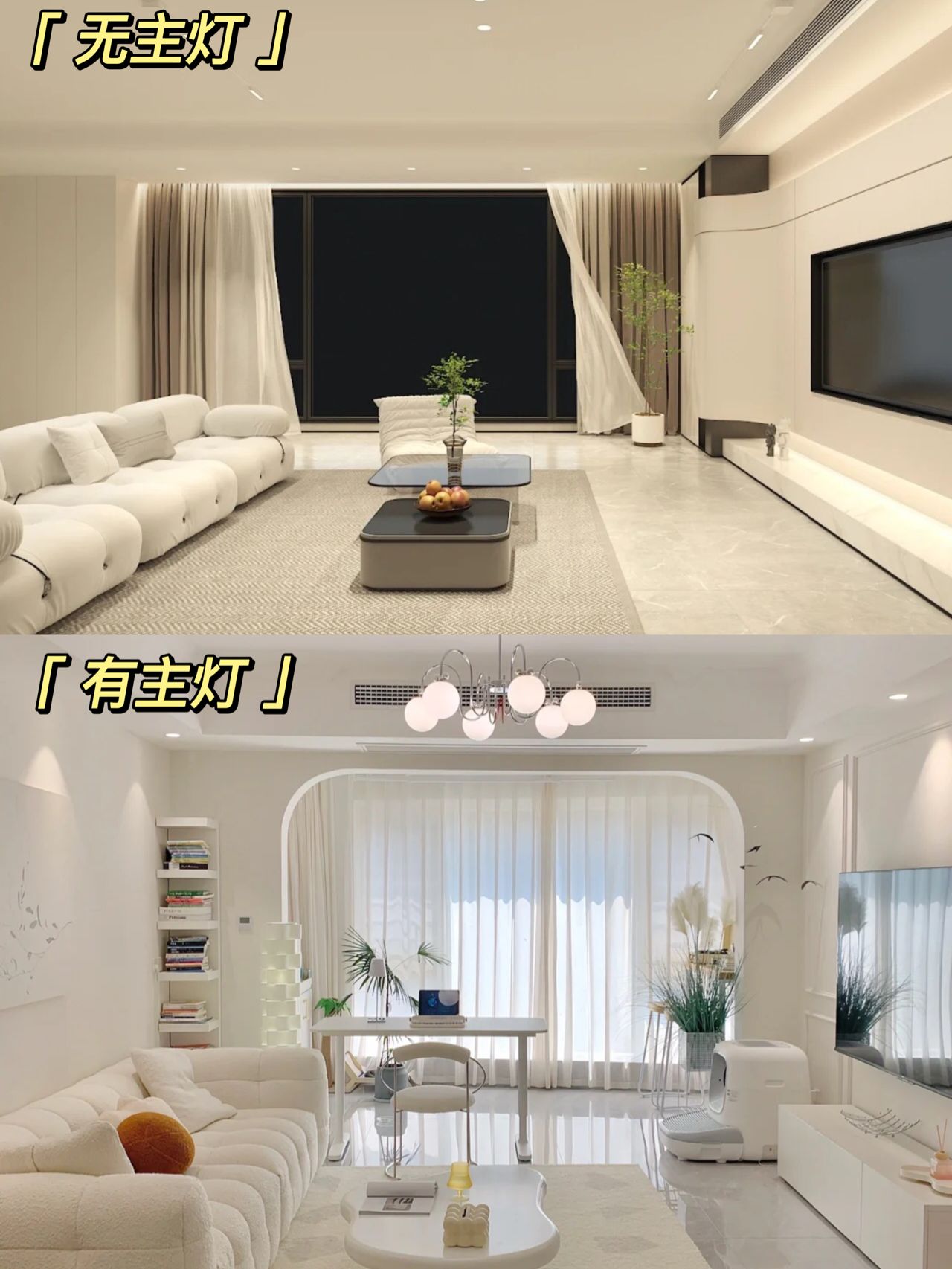 對于主燈的設(shè)計,其實就是一個非常兩極化的審美,這張圖可能有意無意的在試圖“丑化”有主燈,實際上只要燈光瓦數(shù)到了,根本沒有這么暗。